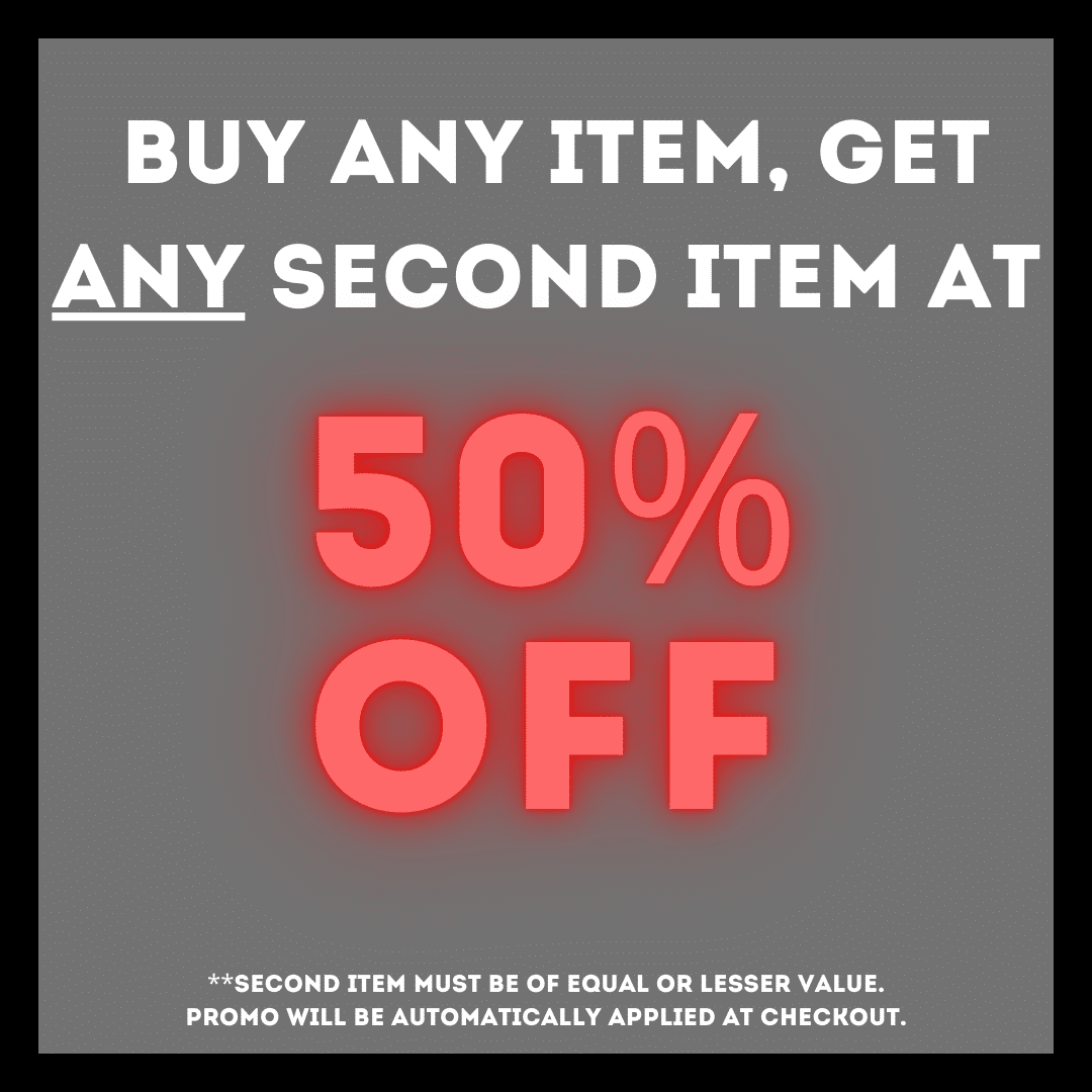 Buy Any Item, Get Any 2nd Item at 50% Off